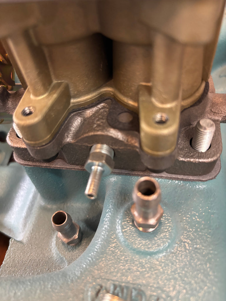 Finally we have the original plated vacuum fitting as the Tri-powers came with from the factory. This is an exact reproduction of the original.